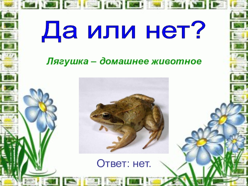 Да или нет?Лягушка – домашнее животноеОтвет: нет.