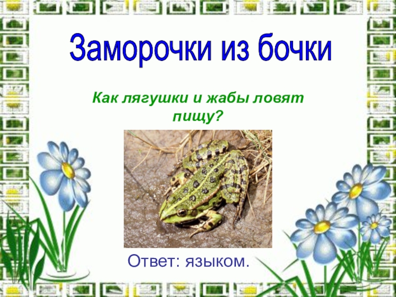 Заморочки из бочкиКак лягушки и жабы ловят пищу?Ответ: языком.