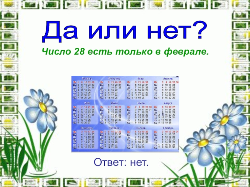 Да или нет?Число 28 есть только в феврале.Ответ: нет.
