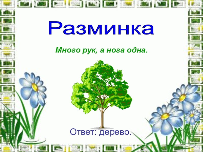 Разминка Много рук, а нога одна.Ответ: дерево.