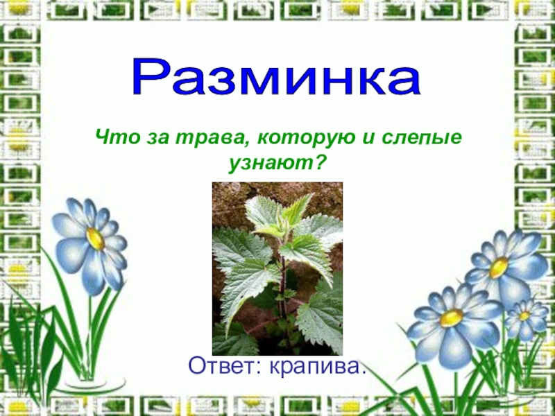 Разминка Что за трава, которую и слепые узнают?Ответ: крапива.