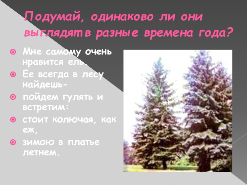 Слайд 7Подумай, одинаково ли они выглядят в разные времена года?