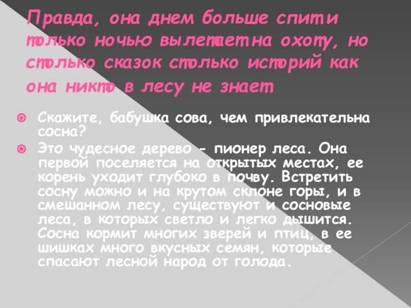Скажите, бабушка сова, чем привлекательна сосна?