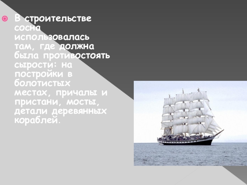 Слайд 18В строительстве сосна использовалась там, где должна была противостоять сырости: на