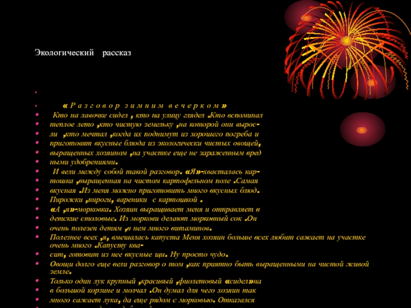 Овощи долго еще вели разговор о том ,как приятно быть выращенными на чистой живой земле.