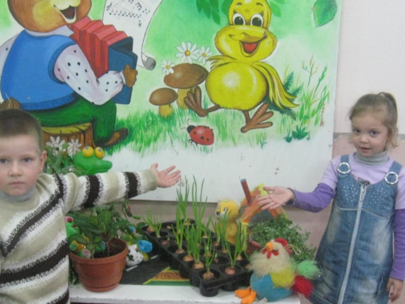 Ведение дневников наблюдений с родителями и воспитателем за ростом растений ,беседы ,сдача лука ,выращенного в уголке-огороде повару школьной столовой продукт эксперементального творчества детей.