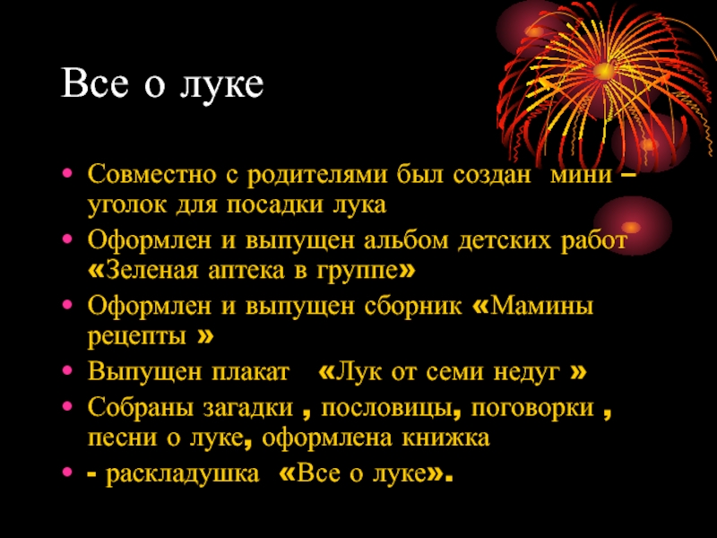 Собраны загадки , пословицы, поговорки ,песни о луке, оформлена книжка