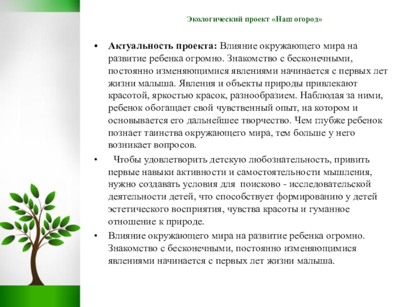 Актуальность проекта: Влияние окружающего мира на развитие ребенка