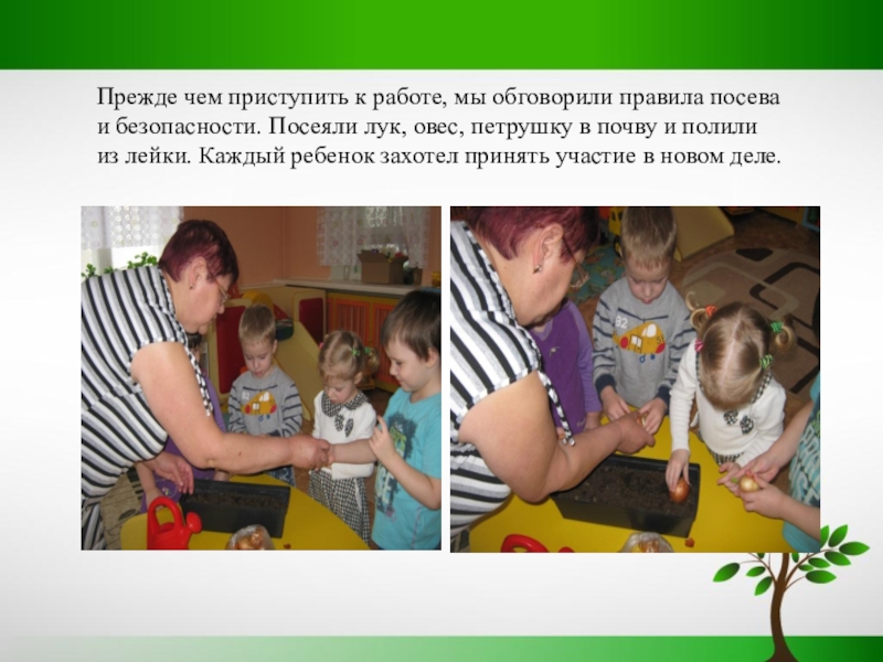 Слайд 12Прежде чем приступить к работе, мы обговорили правила посева и безопасности.
