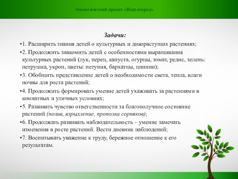 Слайд 7Экологический проект «Наш огород»