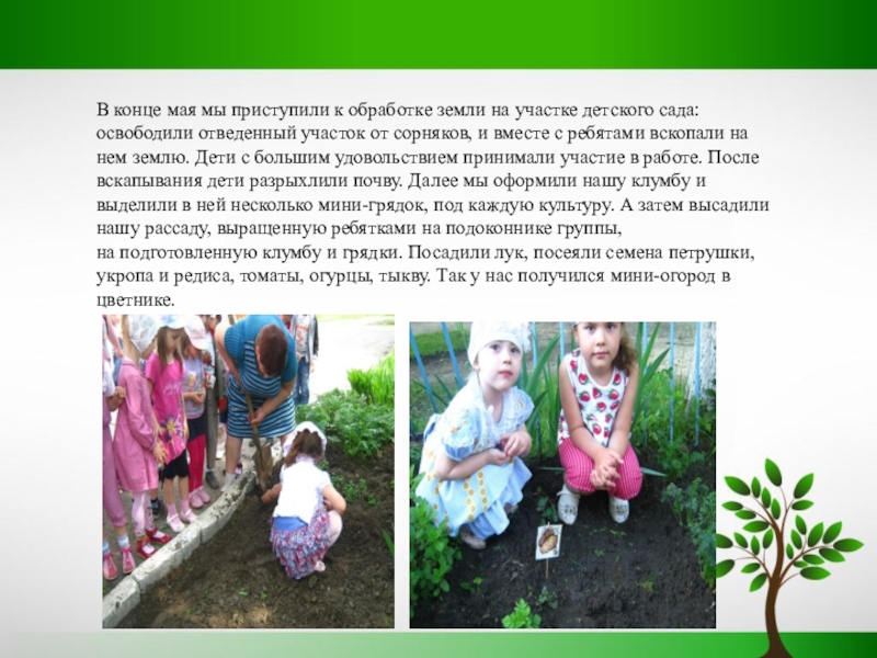 В конце мая мы приступили к обработке земли на участке детского сада: