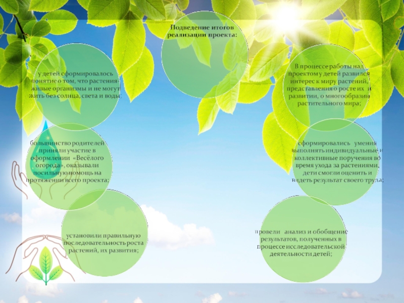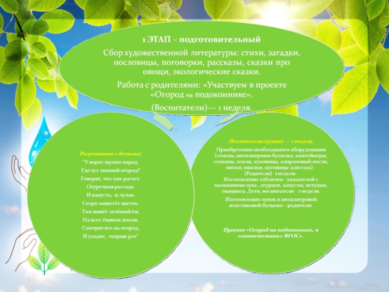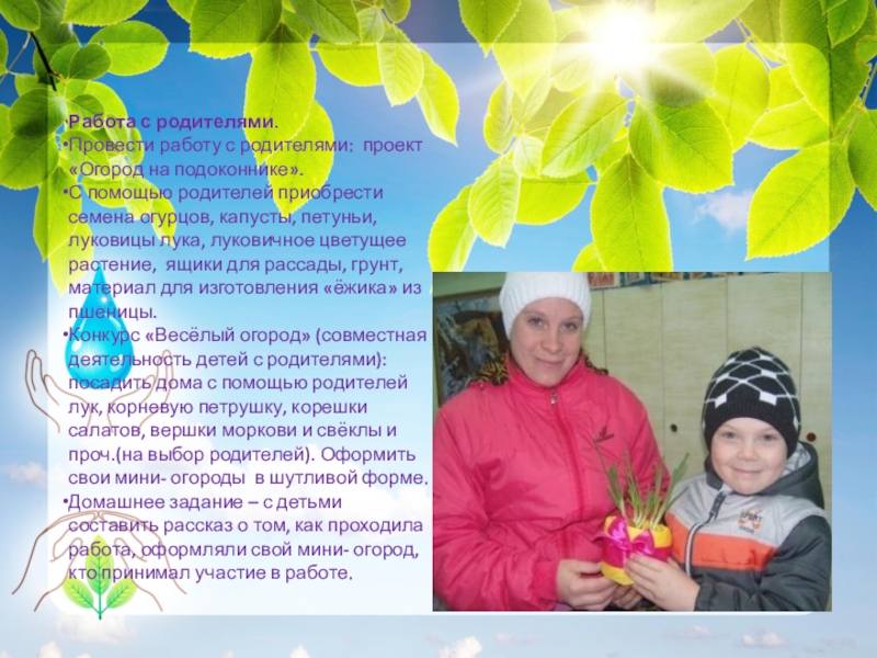 Цель: обогащать знания дошкольников о культурных растениях; о необходимых условиях для их роста; о способах ухода за растениями в комнатных условиях; сделать проект сотворчеством воспитателя, детей и родителей.