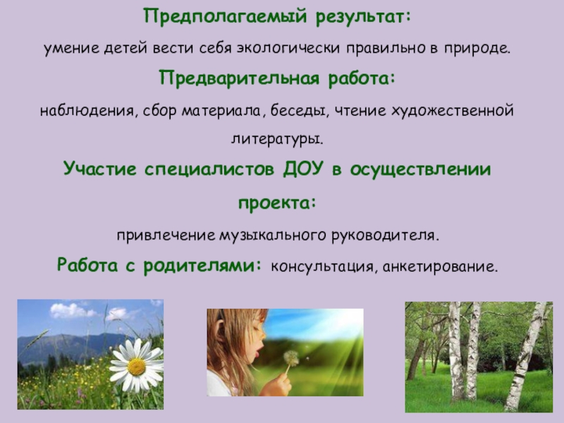проводить с дошкольниками разнообразную эколого-педагогическую работу.