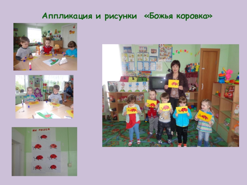 Слайд 25Аппликация и рисунки «Божья коровка»