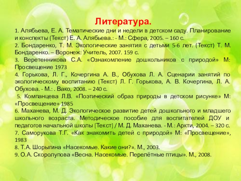 9. О.А. Скоролупова «Весна. Насекомые. Перелётные птицы». М., 2008.