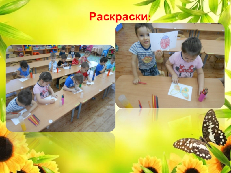 Раскраски: «Мухи», «Божьи коровки», «Кузнечики».