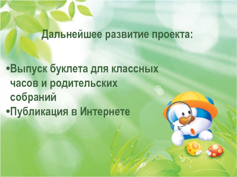 Дальнейшее развитие проекта: