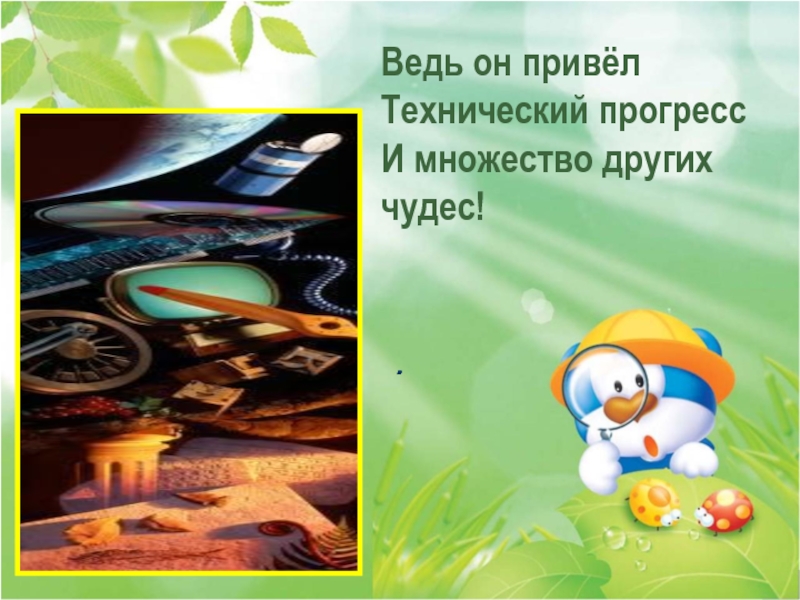 Показать влияние прогресса и цивилизации на природную среду.