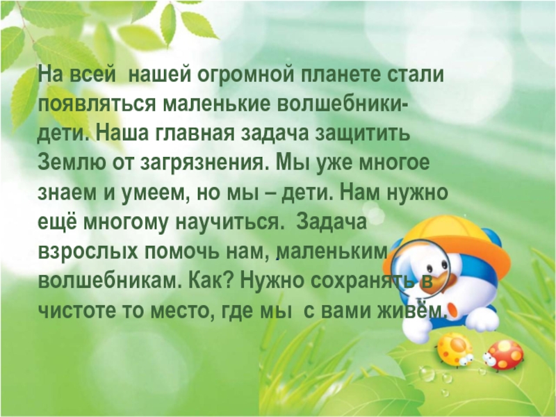 Это сайт презентаций, где можно хранить и обмениваться своими презентациями, докладами, проектами, шаблонами в формате PowerPoint с другими пользователями. Мы помогаем школьникам, студентам, учителям, преподавателям хранить и обмениваться учебными материалами.