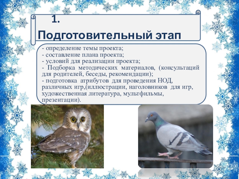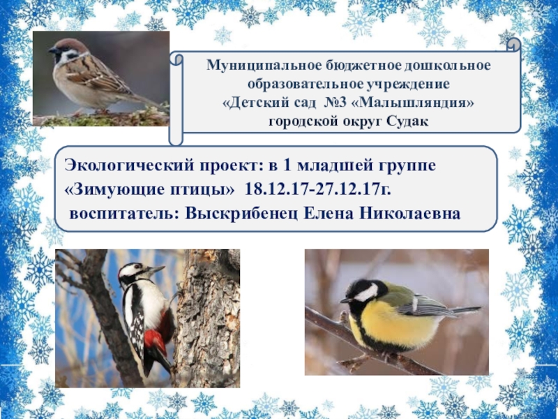 Экологический проект: в 1 младшей группе «Зимующие птицы» 18.12.17-27.12.17г.