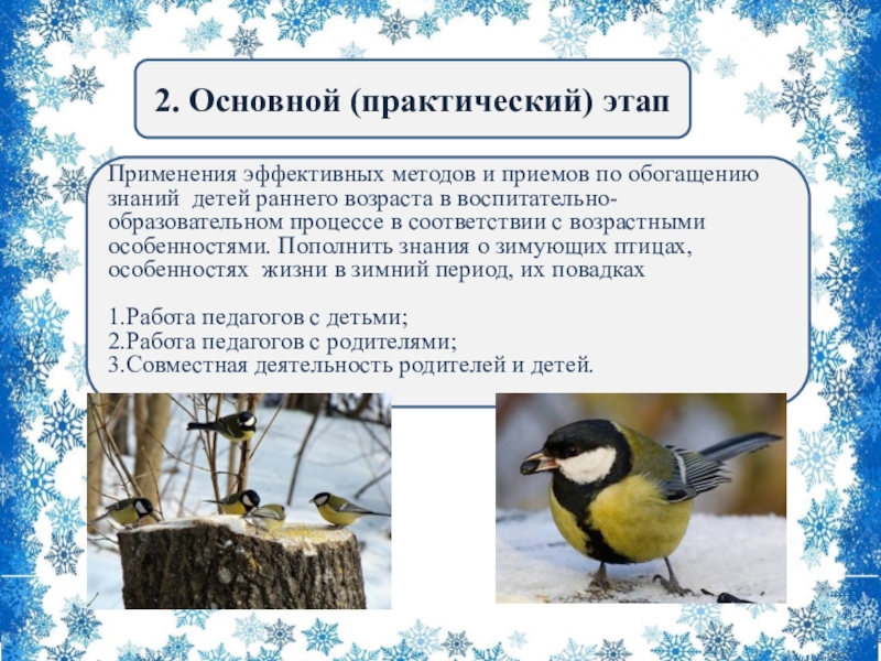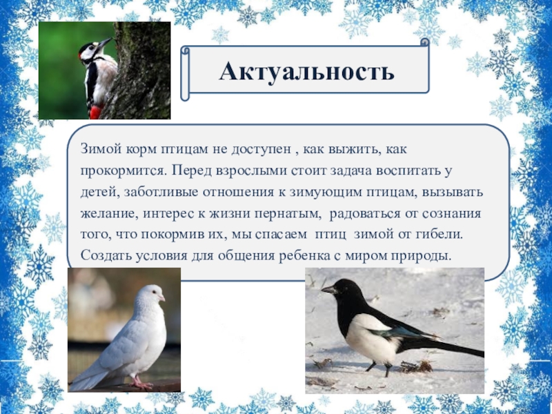 -учить узнавать, называть зимующих птицах;