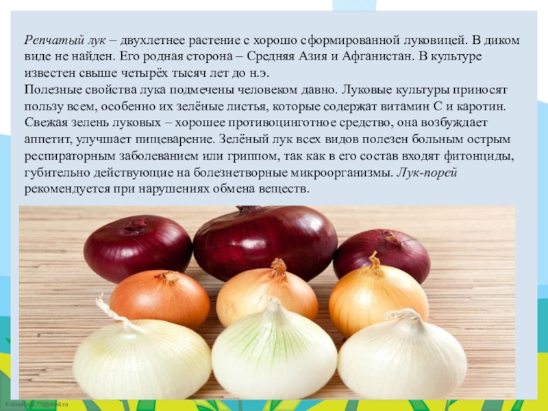 Слайд 11Репчатый лук – двухлетнее растение с хорошо сформированной луковицей. В диком