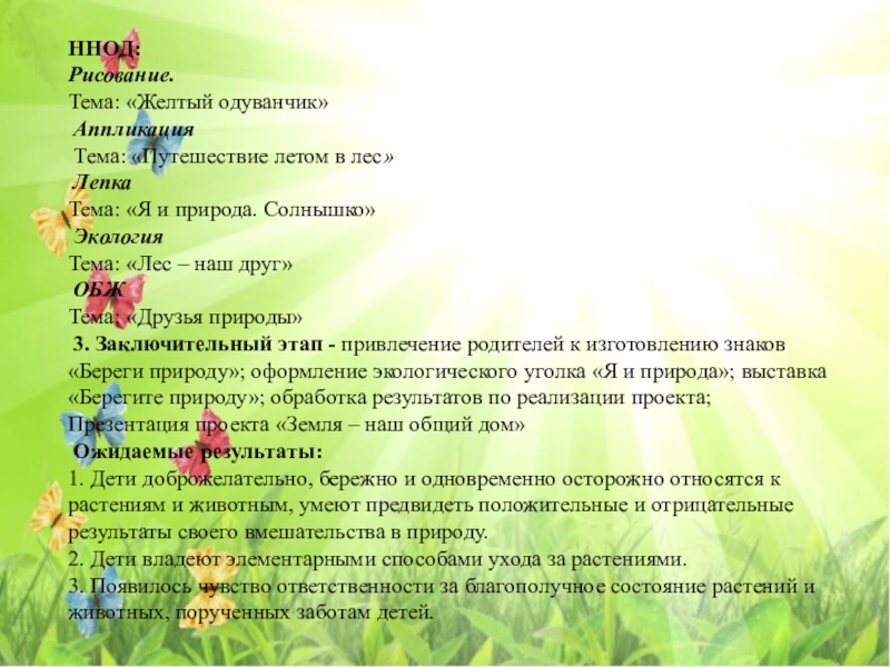 Наблюдения на прогулке: «Птицы», «Насекомые», «Деревья и растения».