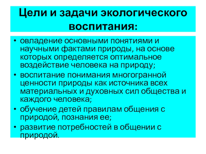 воспитание понимания многогранной ценности природы как источника всех материальных и духовных сил общества и каждого человека;
