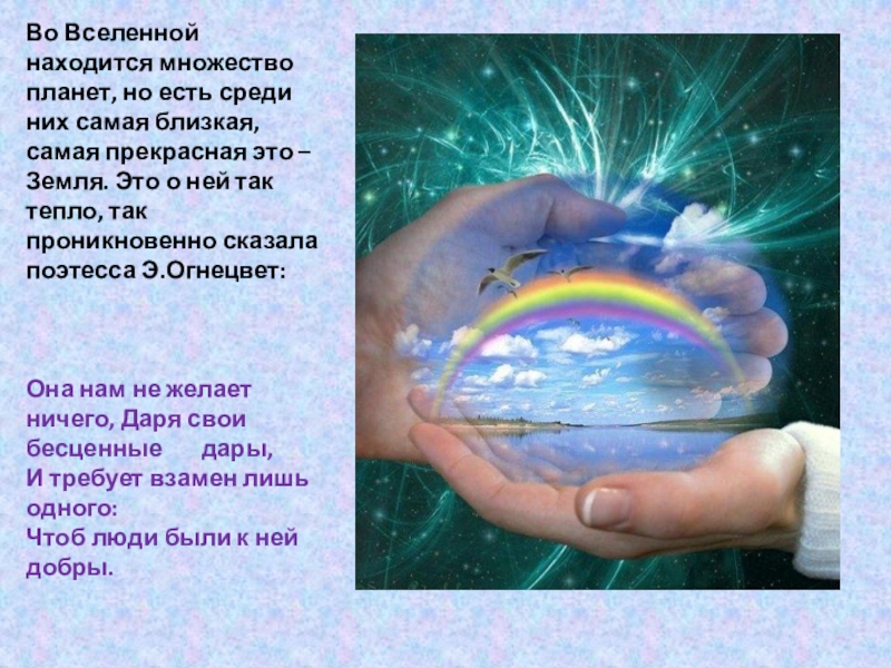 самая прекрасная это – Земля. Это о ней так тепло, так проникновенно сказала поэтесса Э.Огнецвет: