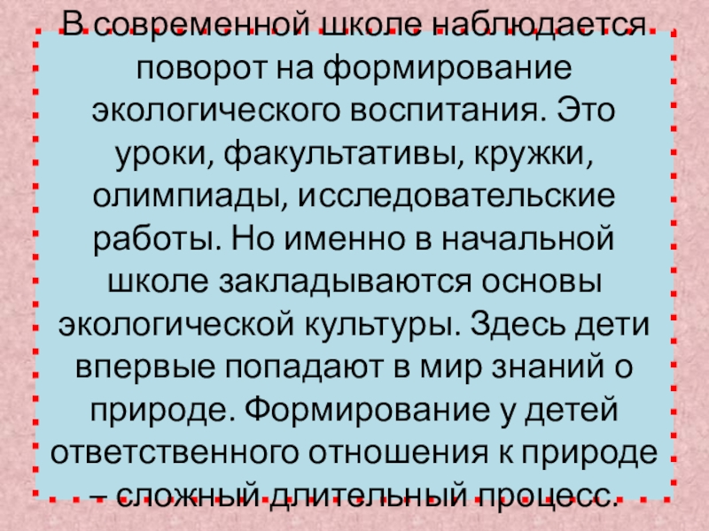 Слайд 5В современной школе наблюдается поворот на формирование экологического воспитания. Это уроки,