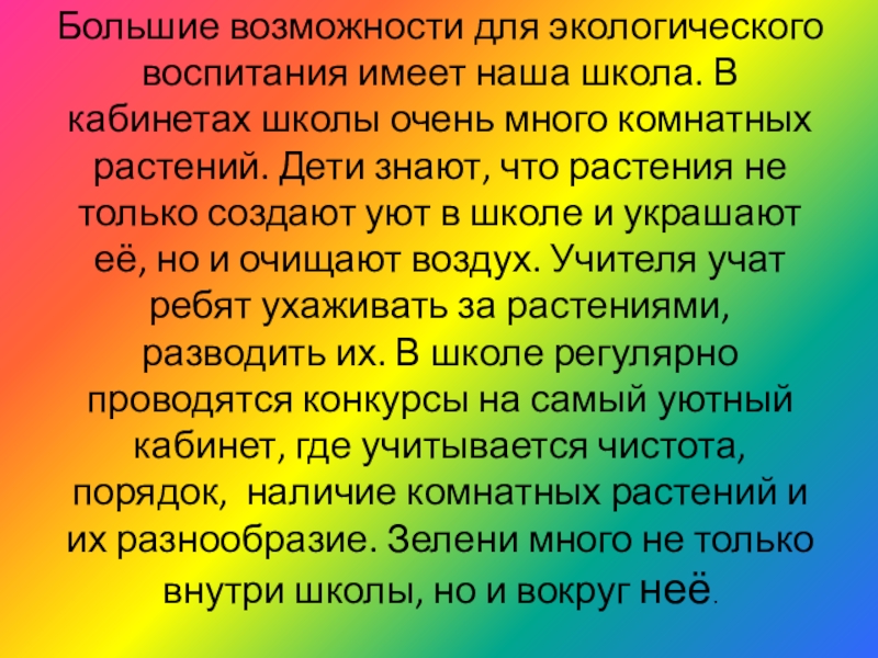 Слайд 13Большие возможности для экологического воспитания имеет наша школа. В кабинетах школы