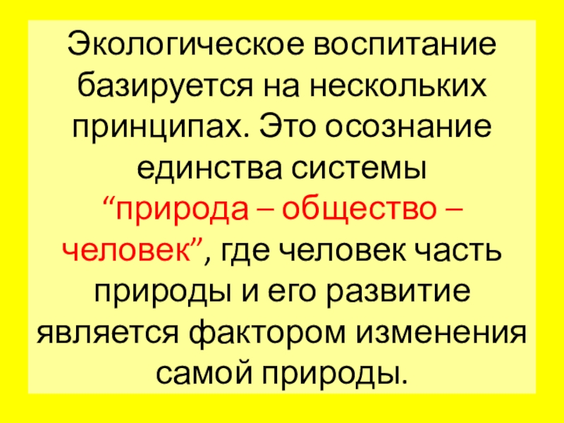 Слайд 3Экологическое воспитание базируется на нескольких принципах. Это осознание единства системы