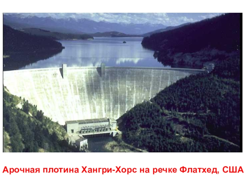 Слайд 8Арочная плотина Хангри-Хорс на речке Флатхед, США