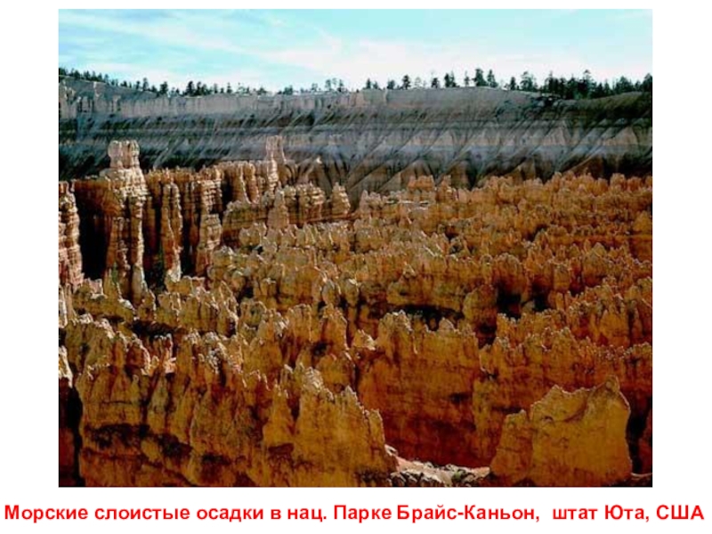 Слайд 26Морские слоистые осадки в нац. Парке Брайс-Каньон, штат Юта, США