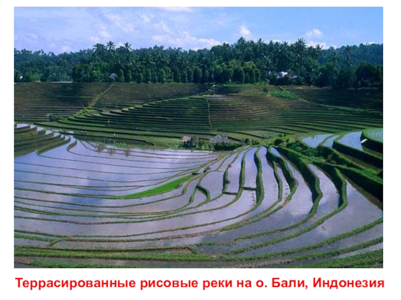 Слайд 7Террасированные рисовые реки на о. Бали, Индонезия
