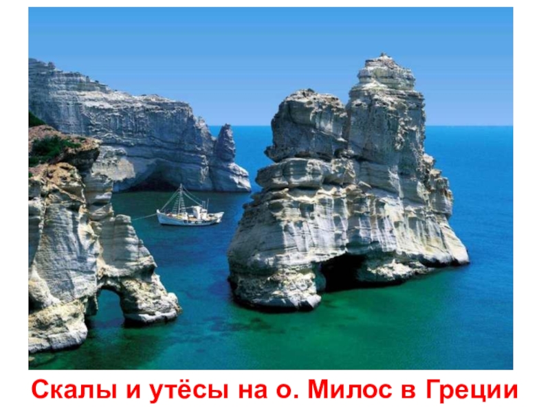 Слайд 3Скалы и утёсы на о. Милос в Греции