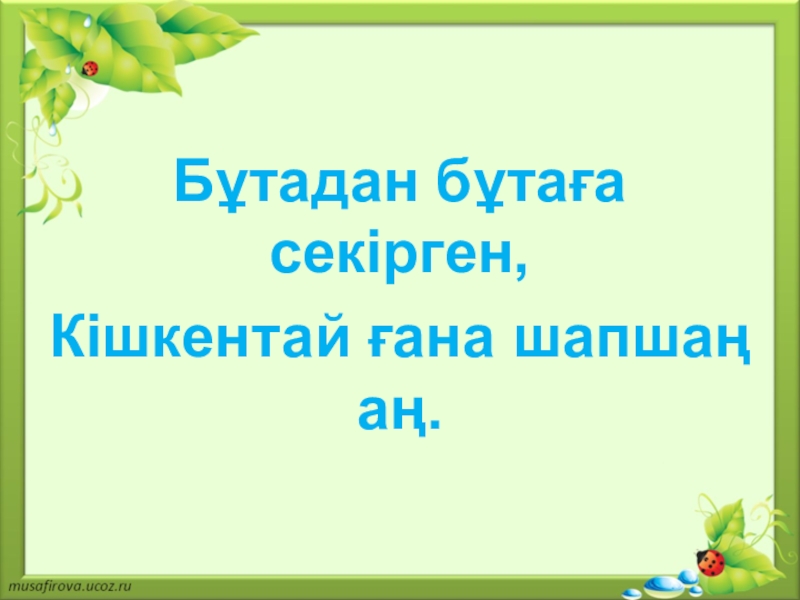 Слайд 10Бұтадан бұтаға секірген,
