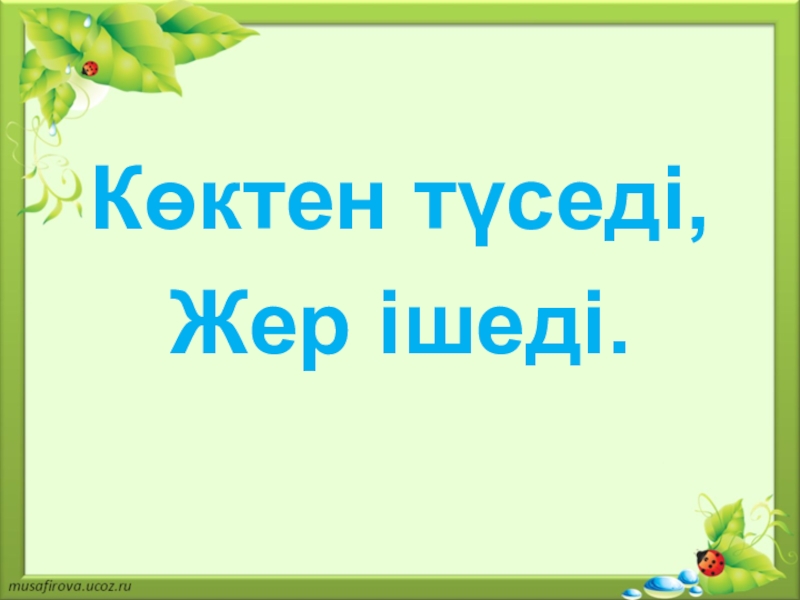 Слайд 20Көктен түседі,