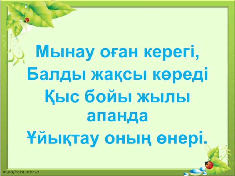 Слайд 2Адамдардың табиғатсыз күні жоқ, Оны айтуға табиғаттың тілі жоқ