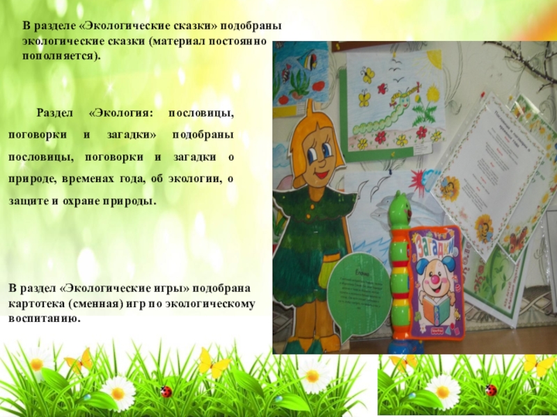 В раздел «Экологические игры» подобрана картотека (сменная) игр по экологическому воспитанию.