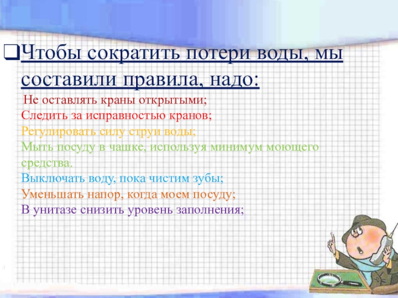 Не закрывая крана мы израсходо-