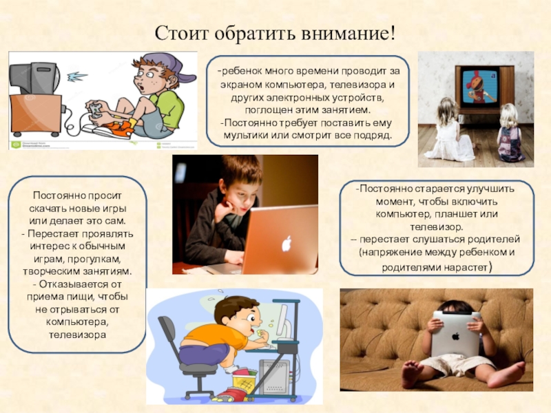 - Отказывается от приема пищи, чтобы не отрываться от компьютера, телевизора