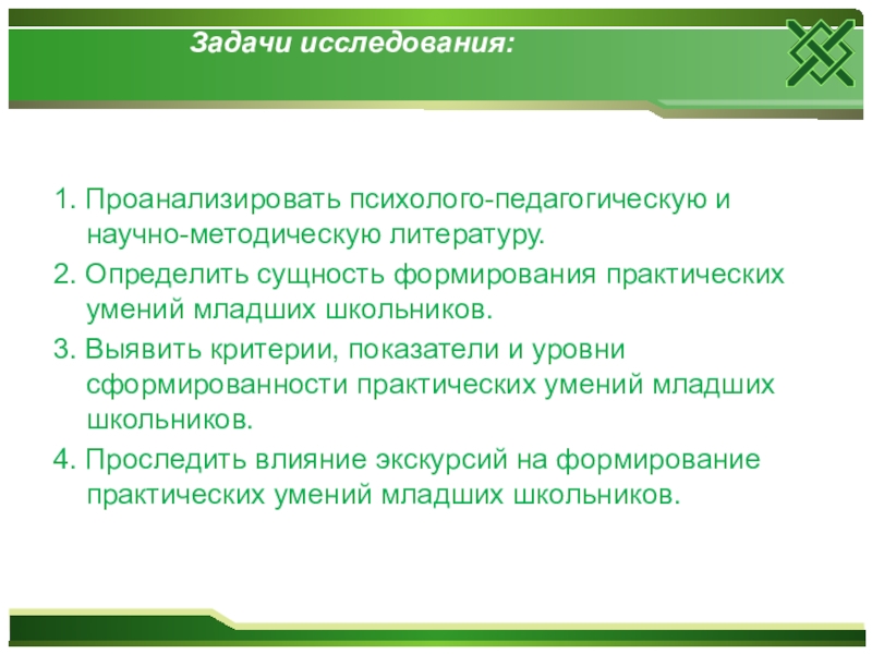 Определить роль экскурсий в формировании практических умений младших школьников.