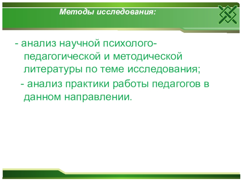 - анализ научной психолого-педагогической и методической литературы по теме исследования;