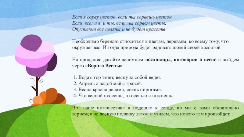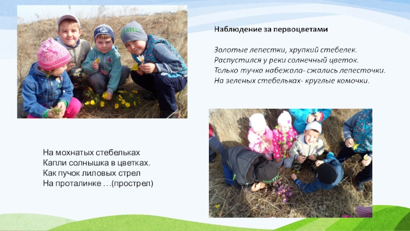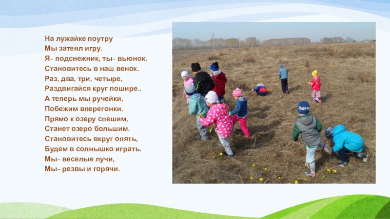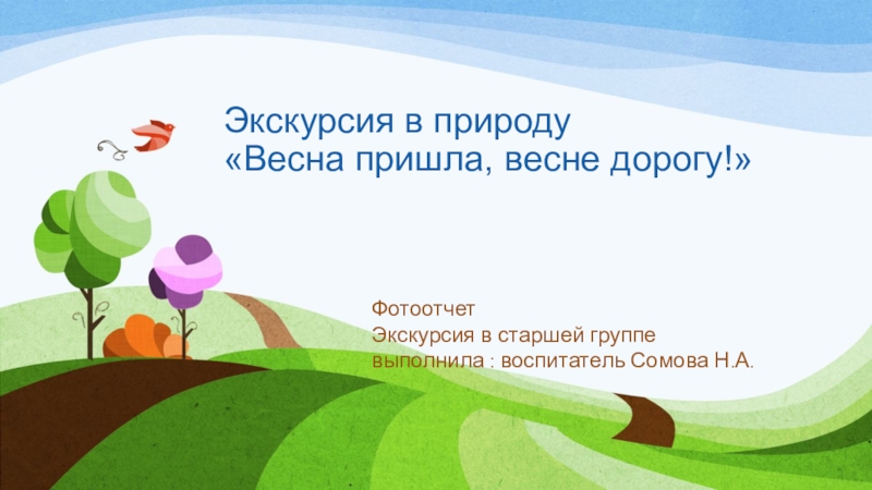 Воспитатель: С первыми лучами весеннего солнца природа преображается. Весна приглашает вас на прогулку, чтобы вы могли увидеть все её следы.