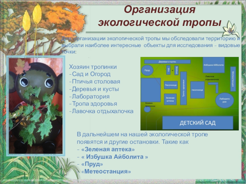 В дальнейшем на нашей экологической тропе появятся и другие остановки. Такие как