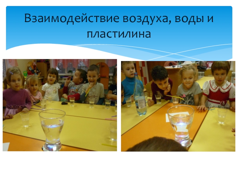 Слайд 5Взаимодействие воздуха, воды и пластилина