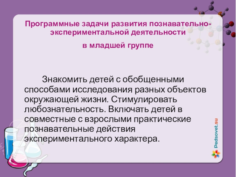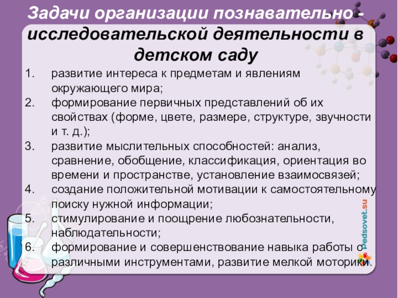 Задачи организации познавательно -исследовательской деятельности в детском саду