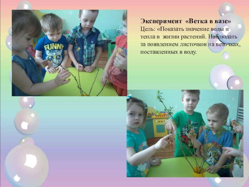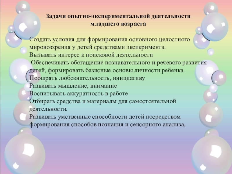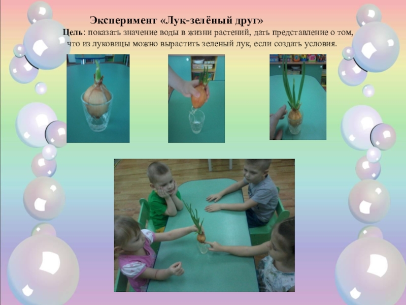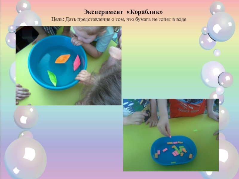 Создать условия для формирования основного целостного мировоззрения у детей средствами эксперимента.
