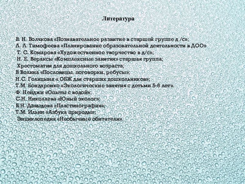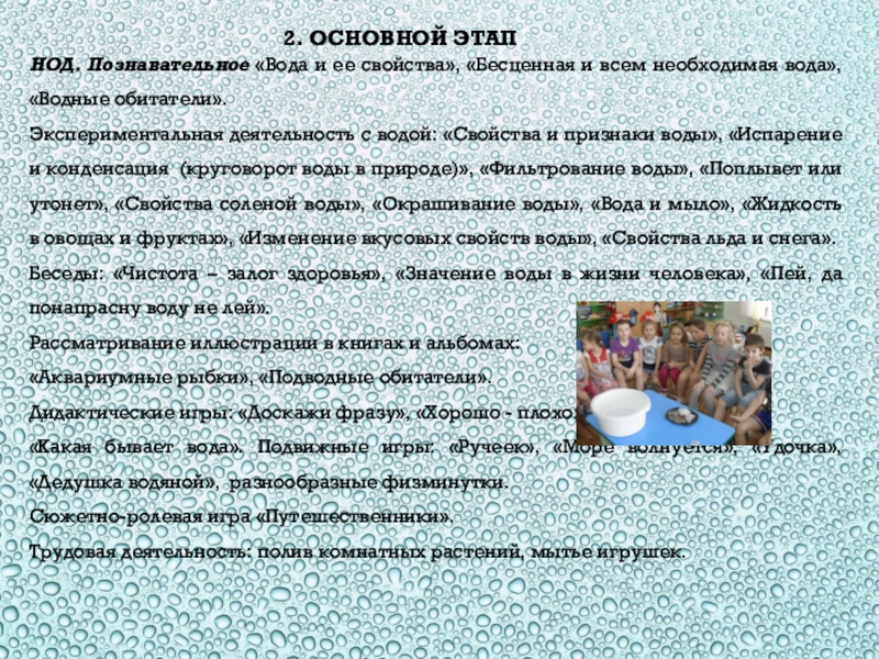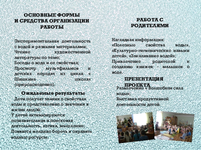 «Полезные свойства воды», «Культурно-гигиенические навыки детей», «Закаливание водой»;
